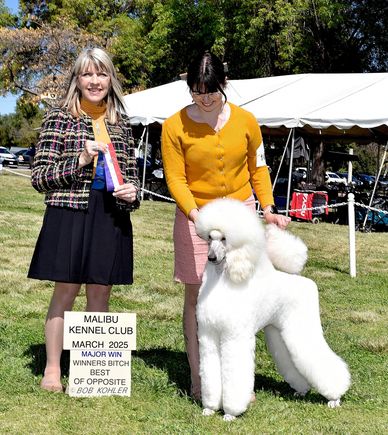 Berlin finished her championship quickly, and is now known as AKC Ch Rosebud's 5-Star Take My Breath Away She lives with our friends at Rosebud Poodles in Pennsylvania
